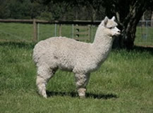 created Australian Alpaca history with three consecutive National titles for Supreme Huacaya fleece. Before he was even four, his earliest progeny were sold for up to $40,000 at the 2007 Halycon dispersal, earmarked for NZ and WA. He is an SRS recommended sire, boasting an amazing and advanced fleece type, with an unforgettable first fleece that was brilliantly lustrous, independently bundled, long, soft and well nourished, importantly his progeny carry the same characteristics, with deep, bold crimping style, and soft creamy handle. Mars continues to extrude fleece at an amazing rate. He and his progeny are destined to make a huge impact on our breeding program.